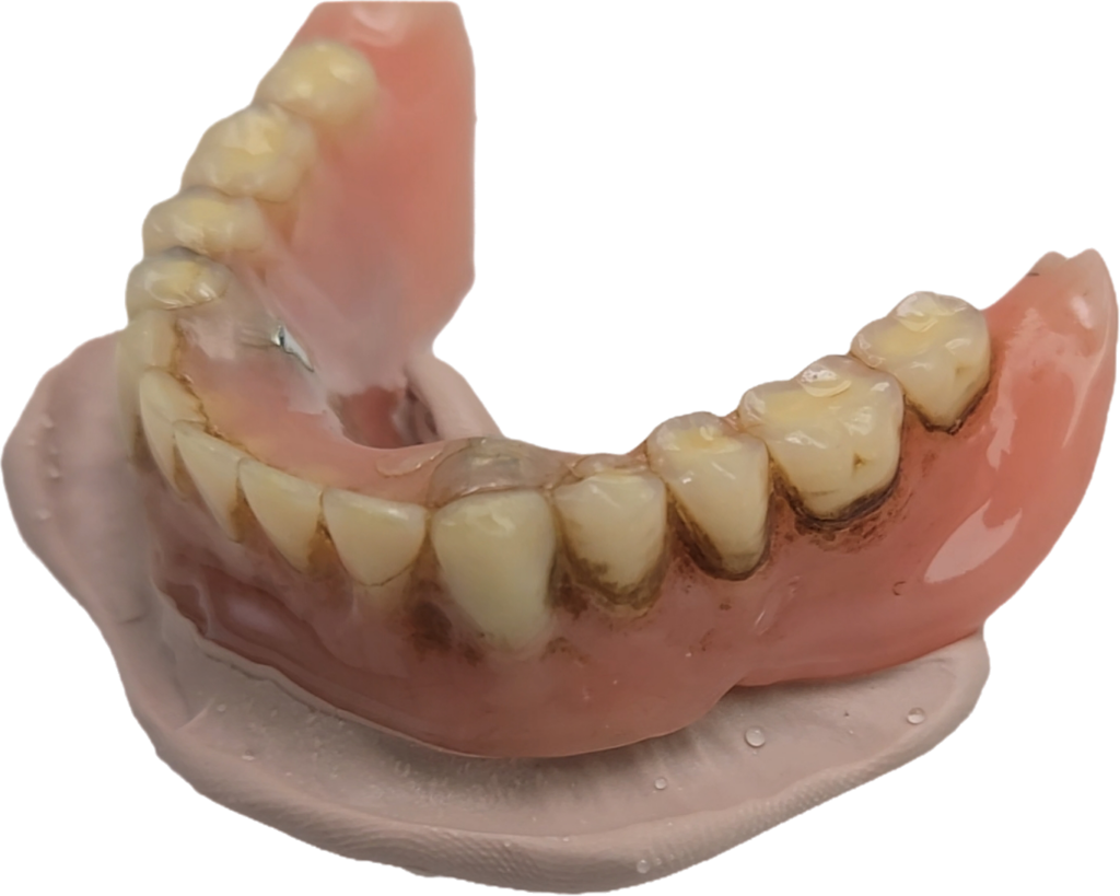 연결 고리(Clasp) 부위 관리: 부분 틀니는 남아있는 치아에 고리(클래스프)를 걸어 지지합니다.